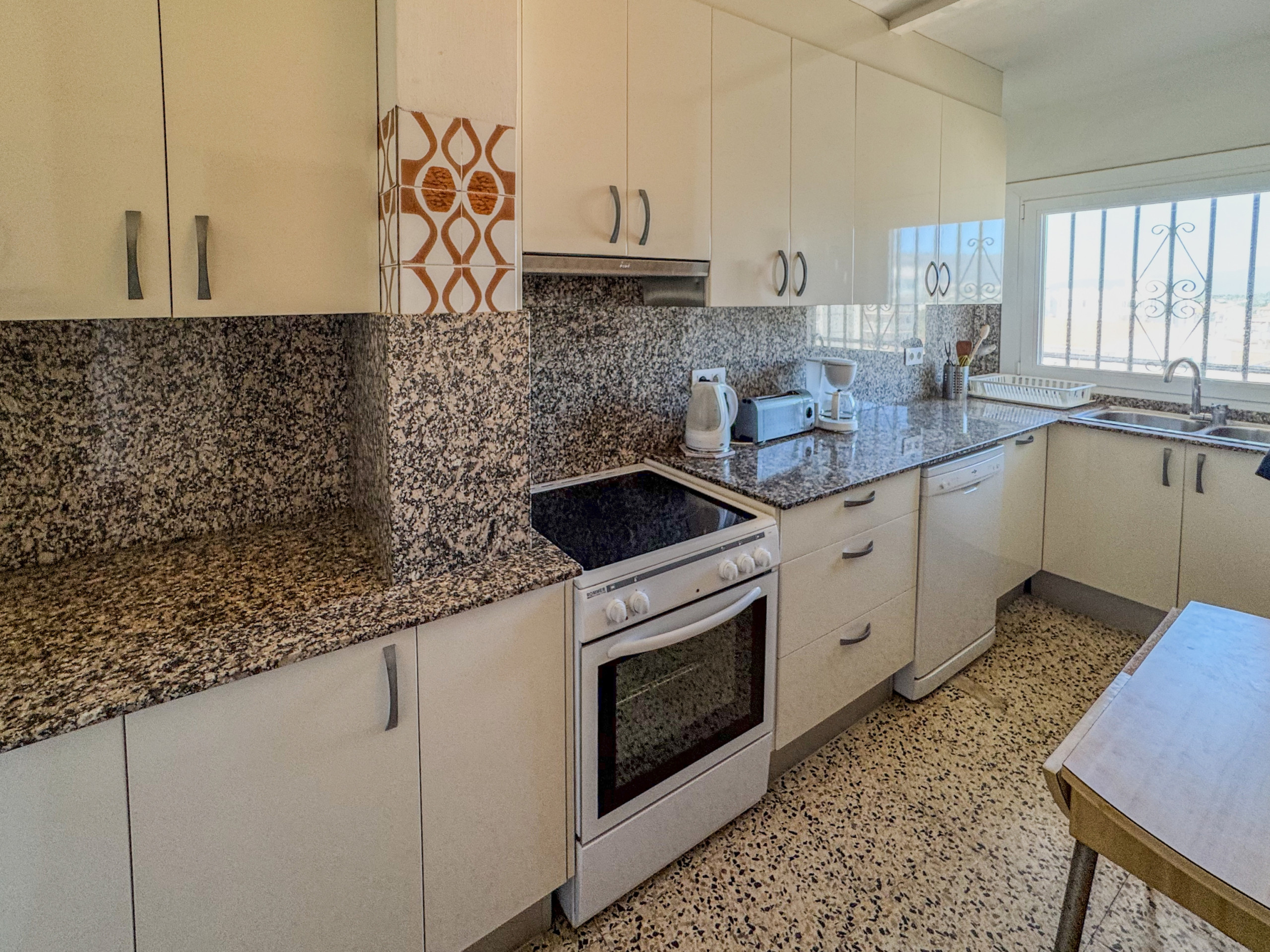 La cocina independiente, de gas, está equipada con nevera, horno, congelador, lavavajillas, vajilla/cubertería, utensilios/cocina y cafetera.